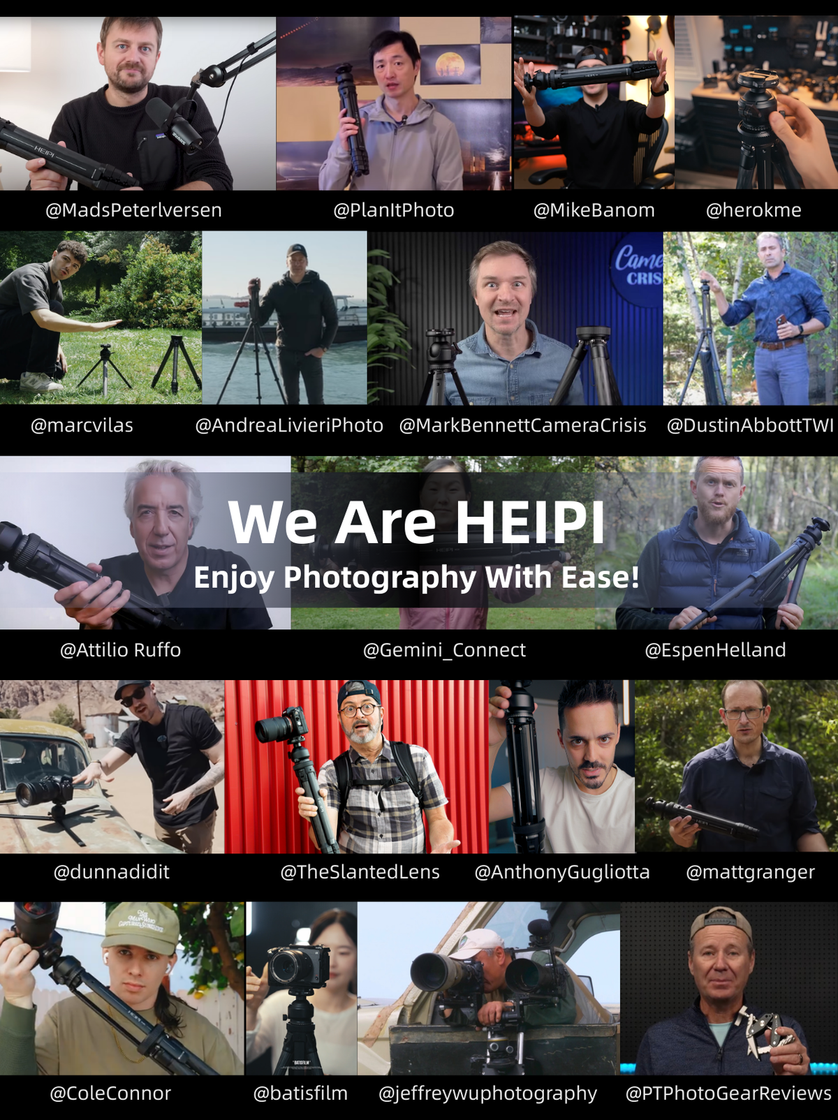 Today, Heipi continues to push boundaries with a growing line up of innovative photography accessories, redefining shooting experiences through smart engineering. Our products have now reachednearly 100 countries and regions, empowering photographers and content creators withreliable, functional, and cutting-edge gear.